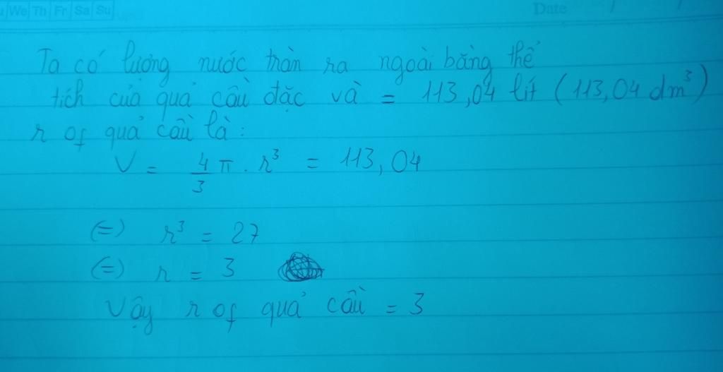 Ta có thể tích nước tràn ra bằng thể tích quả cầu