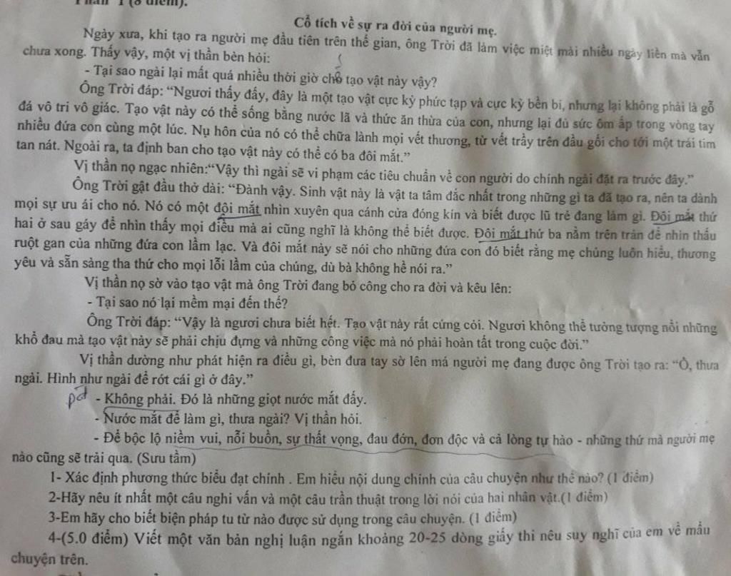 Em hiểu nội dung câu chuyện là vai trò và gánh nặng to lớn của người mẹ, sự khổ đau và sự quan tâm của người mẹ dành cho con