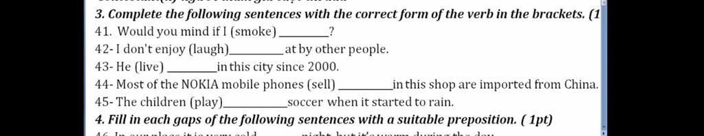 44- Most of the NOKIA mobile phones (sell) ____sold____in this shop are imported from China.