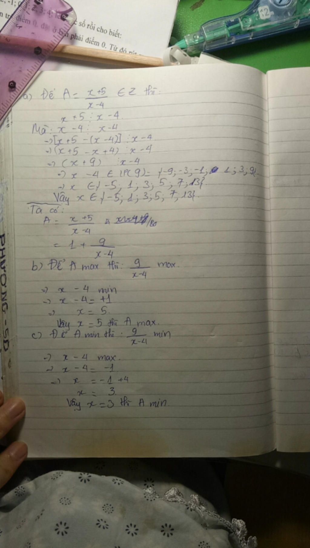 `A = [x+5]/[x-4] = [x-4 + 9]/[x-4] = 1 + 9/[x-4]`