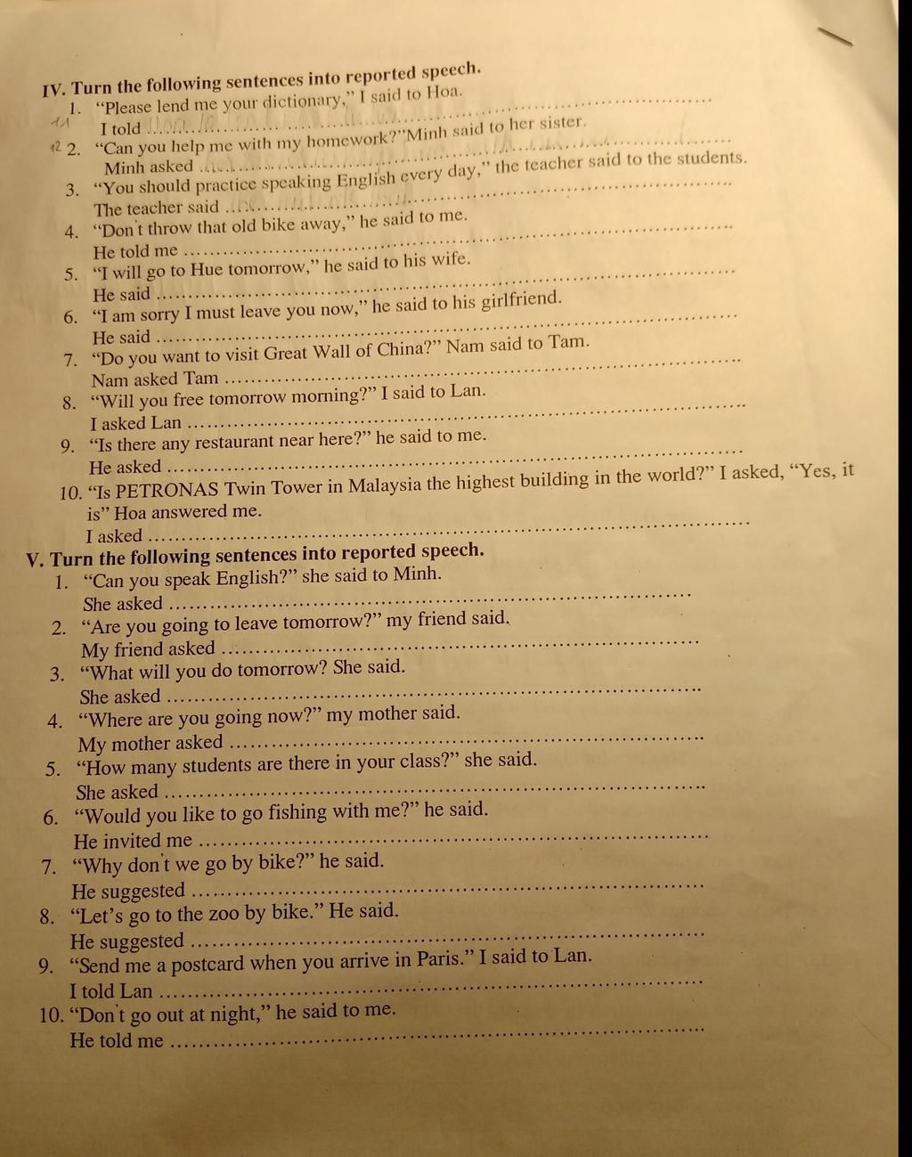 7. Nam asked Tam if she wanted to visit Great Wall of China.