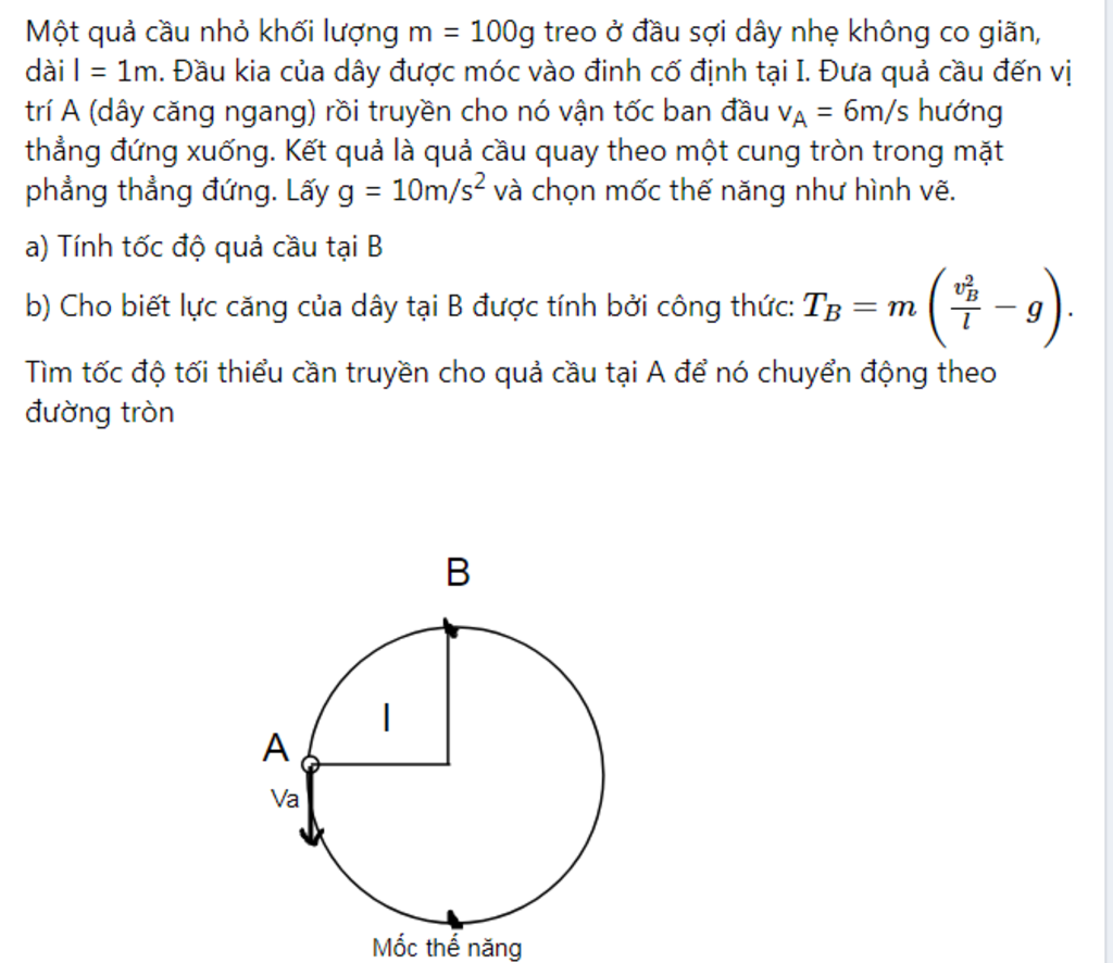 b, Vật tiếp túc chuyển động tròn thì, dây phải luôn căng, hay nói cách khác là dây phải không bị trùng.