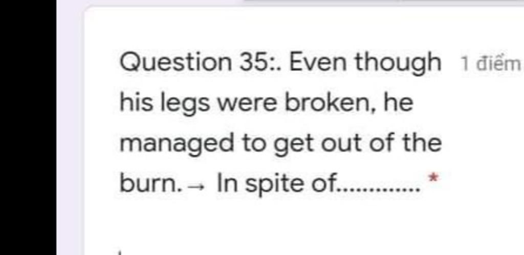* Dịch: Mặc dù bị gãy chân nhưng anh ấy đã cố gắng thoát khỏi vết bỏng