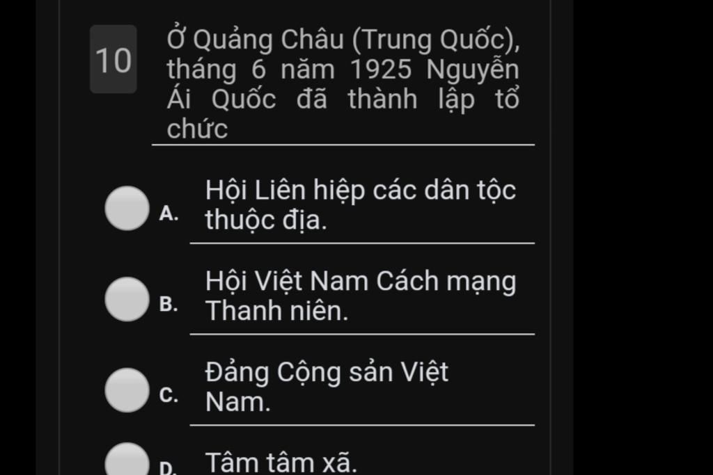 `->` B. Hội Việt Nam Cách mạng Thanh niên.