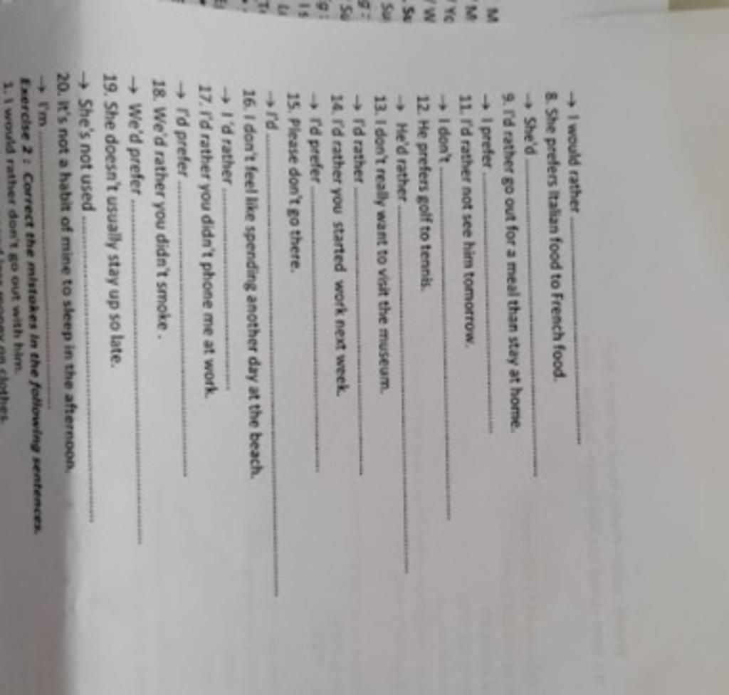 8. She'd rather Italian food than French food.