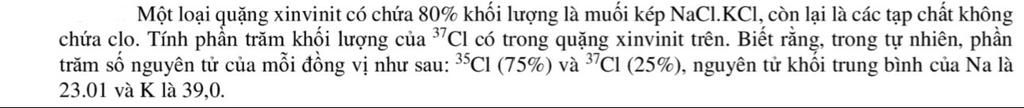 Vậy trong quặng xinvinit trên, phần trăm khối lượng của đồng vị 37Cl ≈ 10,68%