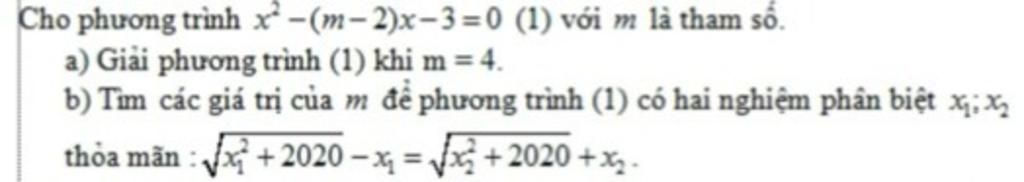 => x1^2 + 2020 -2 căn (x1^2 +2020).(x2^2 +2020) + x2^2 +2020 = ( x2 +x1)^2