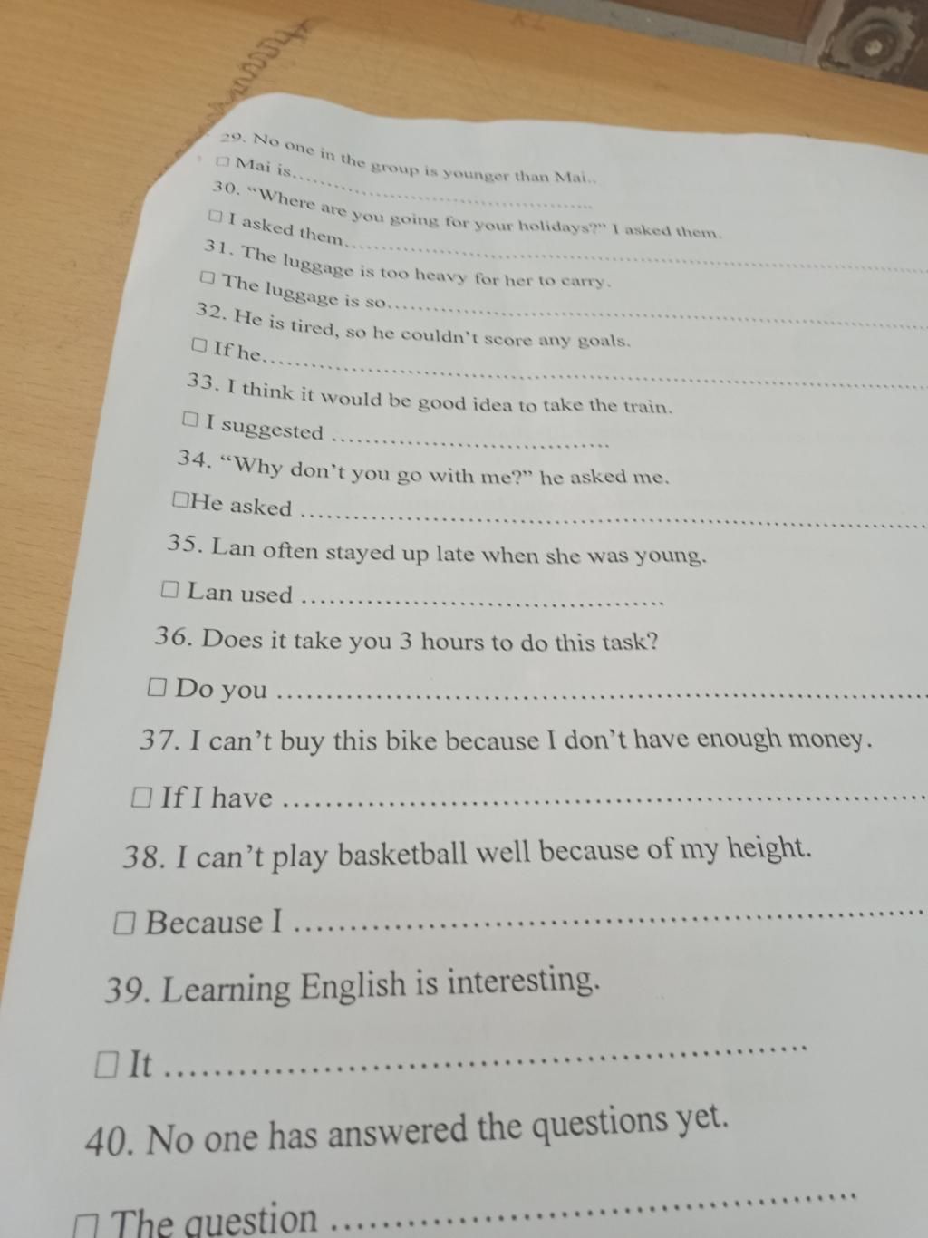 33. I suggest taking the train./I suggest that we should take the train.