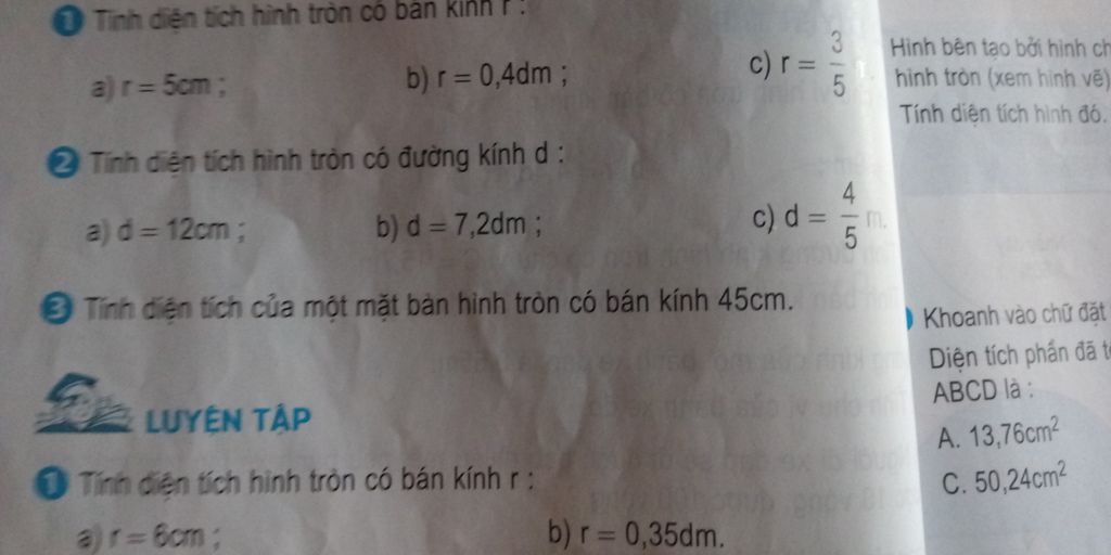 3,6 x 3,6 x 3,14 = 40,6944 (dm2)