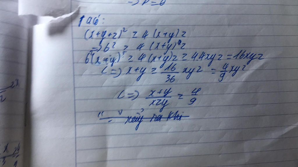 Từ (1) và (2) `=> 36(x+y) ge 16xyz`