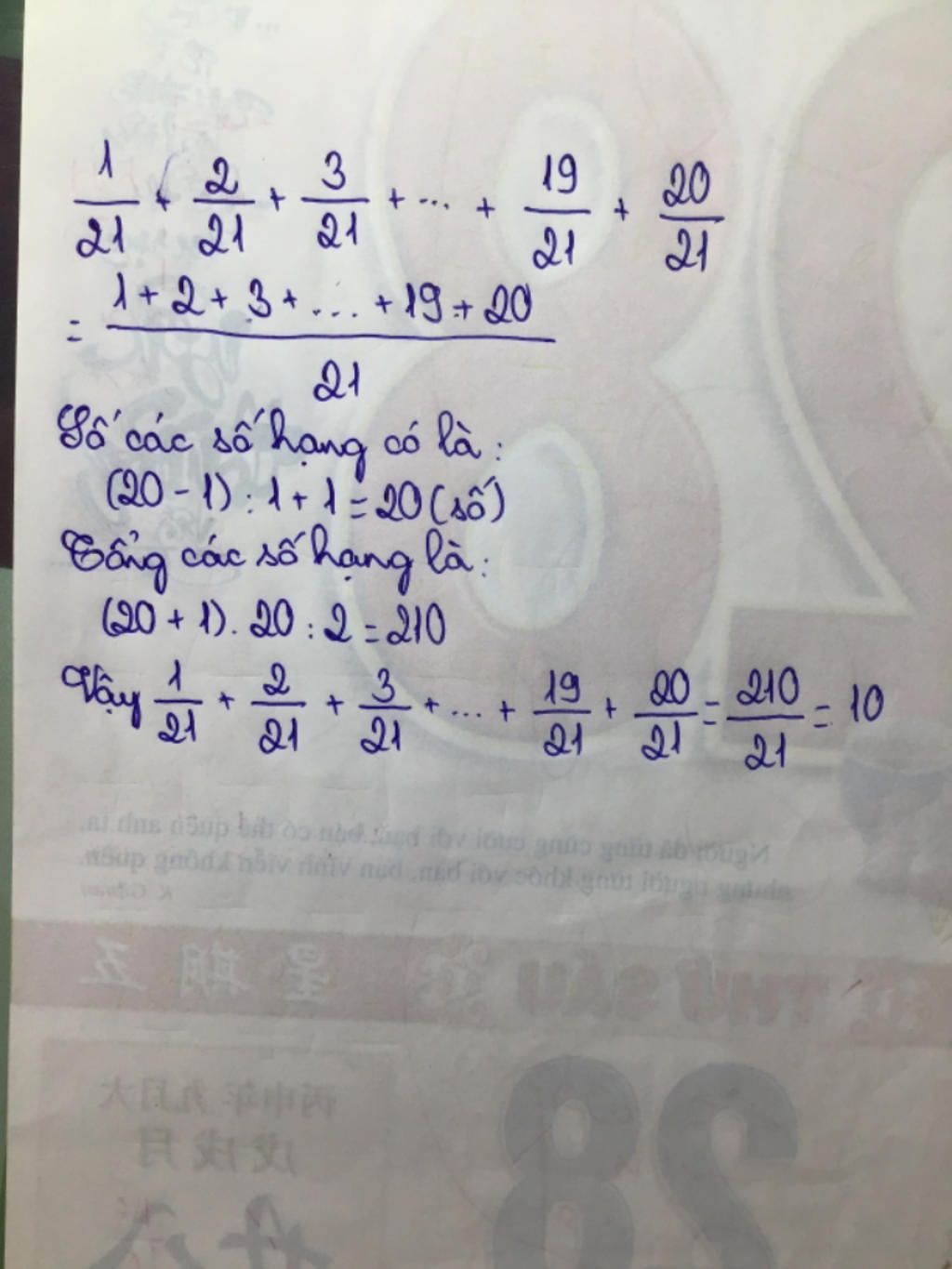`1/21+ 2/21+3/21+4/21+5/21+..........+17/21+18/21+19/21+20/21`