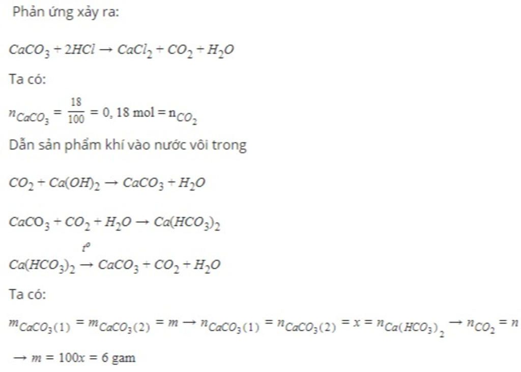 Ta có: $n_{CaCO_3}$ =$\frac{18}{100}$ =0,18 (mol) = $n_{CO_2}$