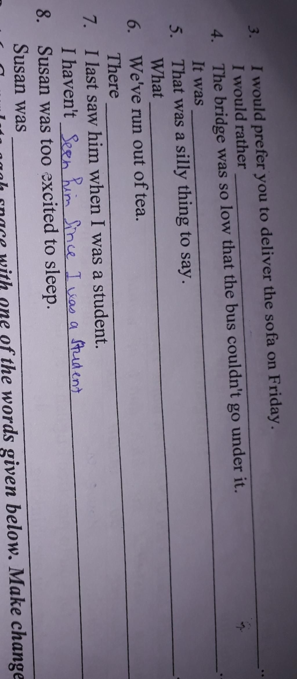 =>S+haven't/hasn't+Vpii+since/for+Vpii.