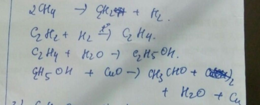 \(2C{H_4}\xrightarrow{{{{1500}^o}C,lln }}{C_2}{H_2} + 3{H_2}\)