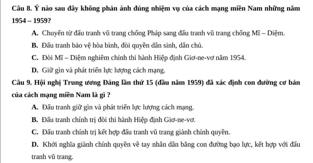 9 - D. Khởi nghĩa giành chính quyền về tay nhân dân bằng con đường bạo lực, kết hợp với đấu tranh vũ trang.