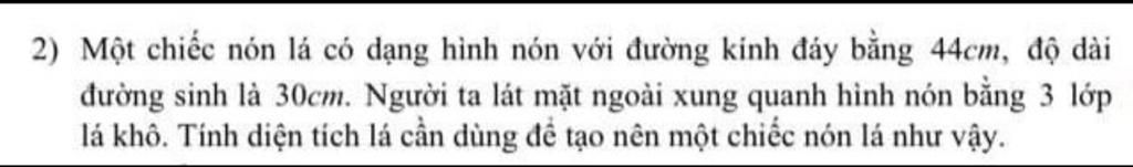 Vậy diện tích lá cần dùng là: `1980π ≈6220,35(cm^2)`