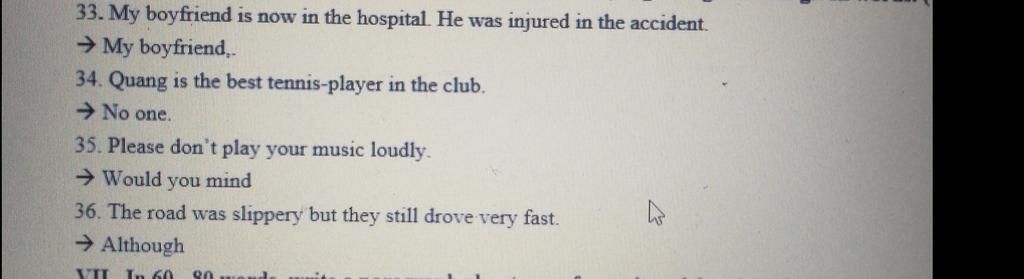 33. My boyfriend, who was injured in the accident, is now in the hospital.
