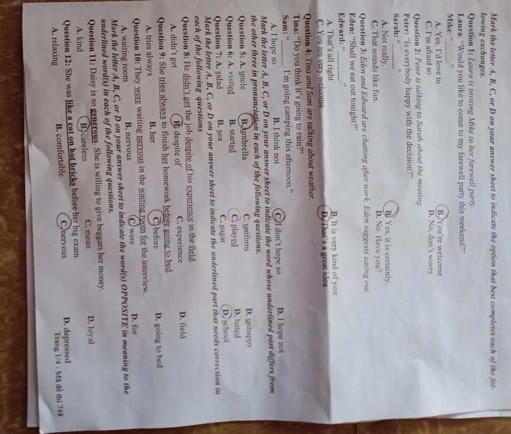 5.C ( uniform : i còn lại u phát âm là /ə/)