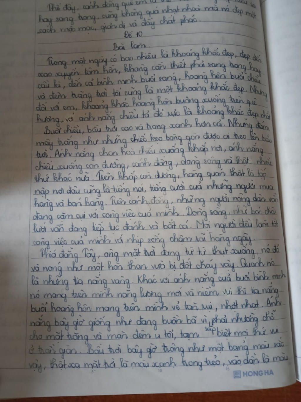 Khung cảnh hoàng hôn của làng quê vào những ngày đông, đem đến cho em những cảm giác thật đặc biệt. Là rét, là tối đấy. Nhưng chính nhờ đó, cảm giác hạnh phúc khi được ôm chú mèo nhỏ, tựa vào lưng cha xem mẹ nấu cơm trong bếp mới càng thêm ấm áp. Những sung sướng mộc mạc, giản dị ấy chỉ có những buổi hoàng hôn mới đem về được.Em rất yêu buổi hoàng hôn trên quê hương em.