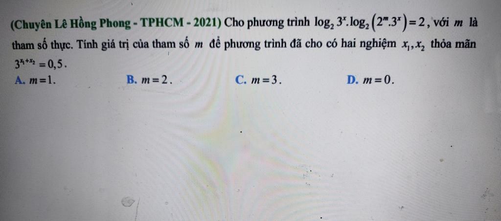 \quad \log_23^x.\log_2(2^m.3^x) = 2\\