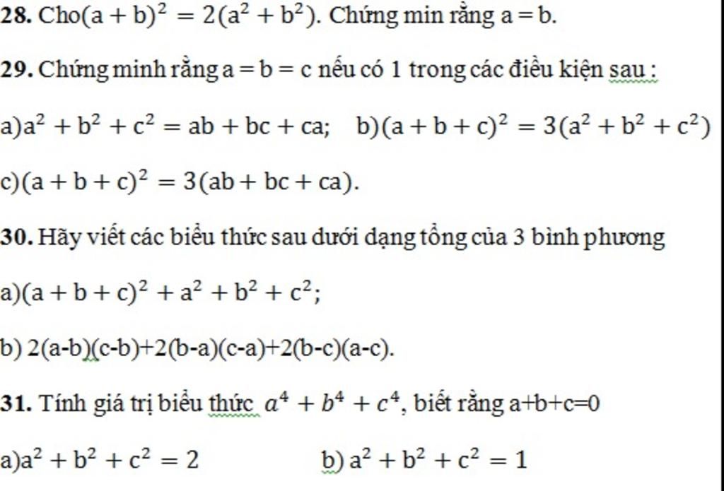 a) a²+b²+c² = ab+bc+ca