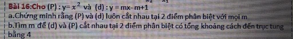 $\Rightarrow (P)$ và $(d)$ luôn cắt nhau nhưng không luôn cắt nhau tại $2$ điểm phân biệt