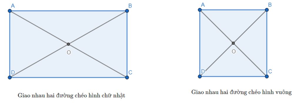 Nên giao nhau hai đường chéo của hình chữ nhật cắt tại một điểm nào đó không vuông góc với nhau.
