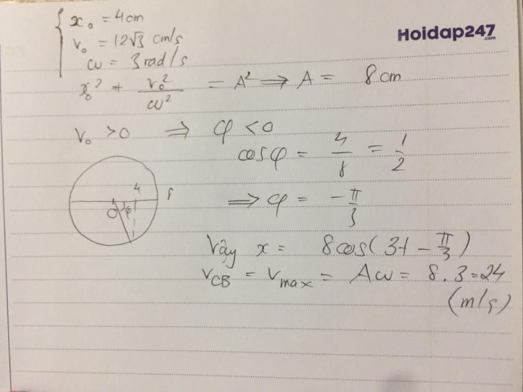 Mà vận tốc ban đầu >0 $\Rightarrow \varphi =-\dfrac{\pi }{3}$