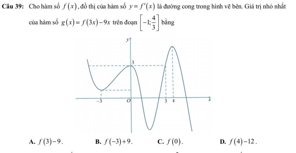 $\mathop{\min}\limits_{\left[-1;\tfrac43\right]}g(x)= g(1)= f(3) - 9$