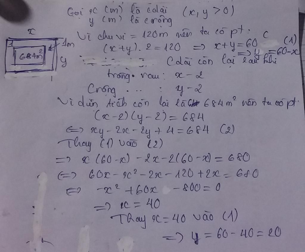 $\to$Chiều dài, chiều rộng khu đất còn lại là $a-1\cdot 2, b-1\cdot 2$ hay $a-2, b-2$