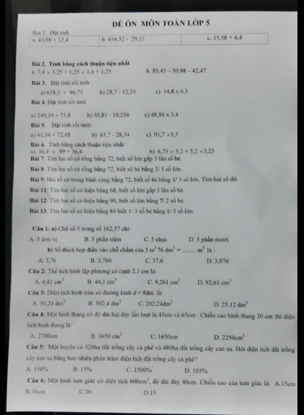 3) Bạn làm tương tự mấy câu khác như câu a nha, do mik làm bằng máy tính hơi lâu, bạn đặt cột tính sao cho dấu phẩy của chúng thẳng hàng với nhau câu a vậy