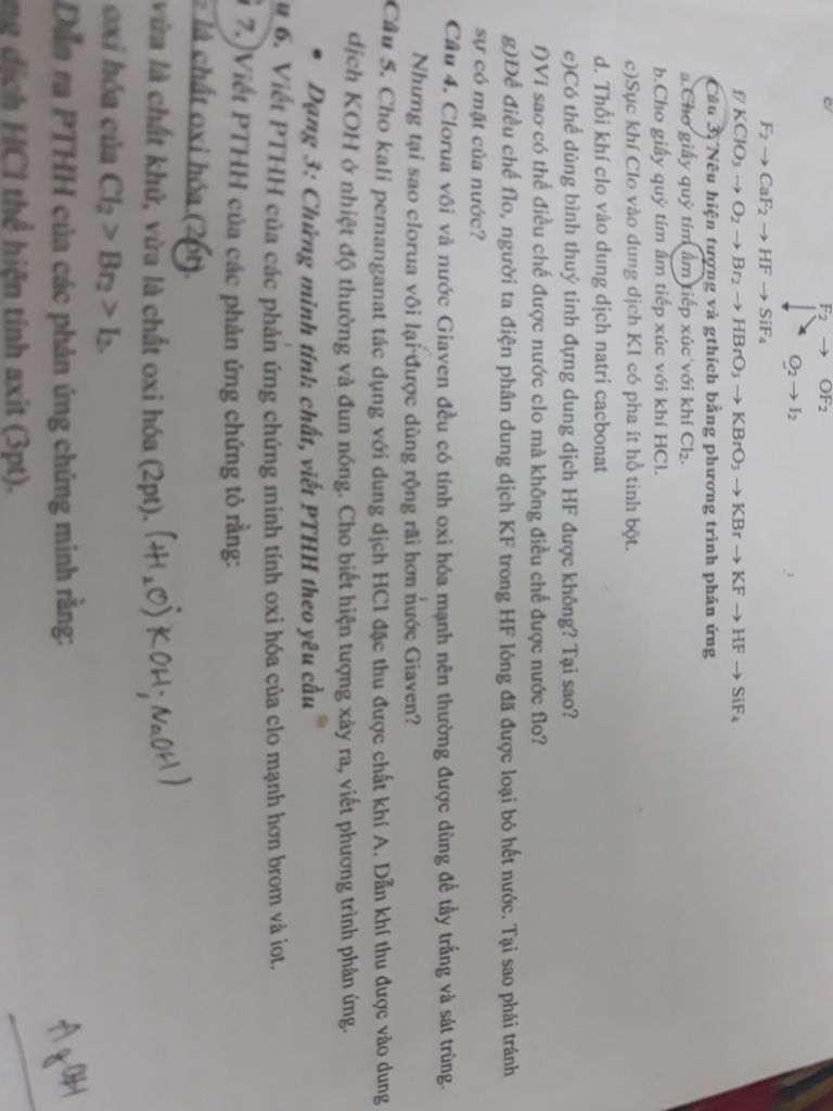 f) vì Flo có tính oxh mạnh làm nước bốc cháy