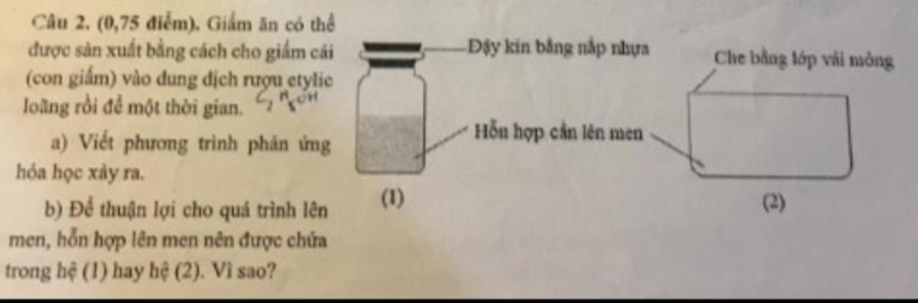 Để thuận lợi cho sự lên men cần tới oxi, nên để hỗn hợp lên men trong hệ (2). Vì: