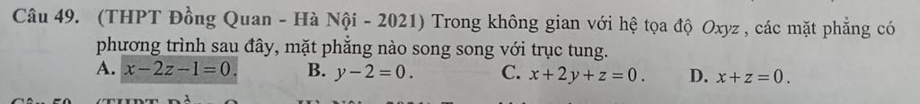 Thử lần lượt vì $O(0,0,0)$ không thuộc $\alpha\to$Loại $C,D$