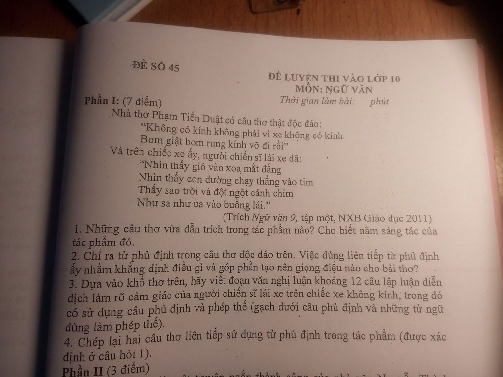 1. Trích trong Bài thơ về tiểu đội xe không kính. Được sáng tác năm 1969