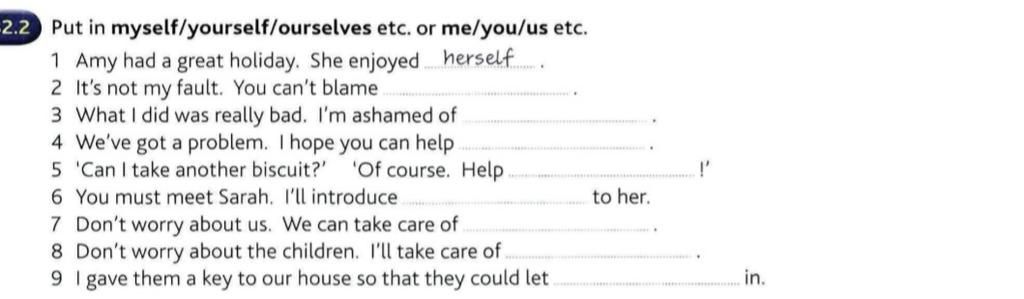 2.2 Put in myself/yourself/ourselves etc. or me/you/us etc.