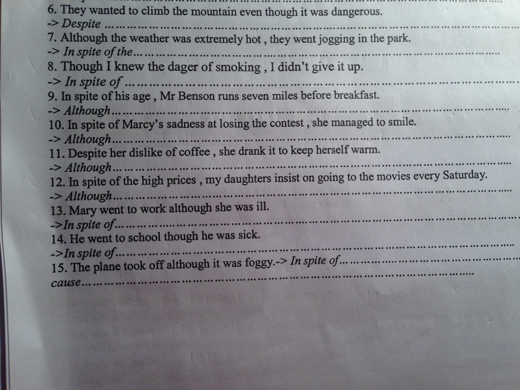 11. Although she disliked of coffee, she drank it to keep herself warm