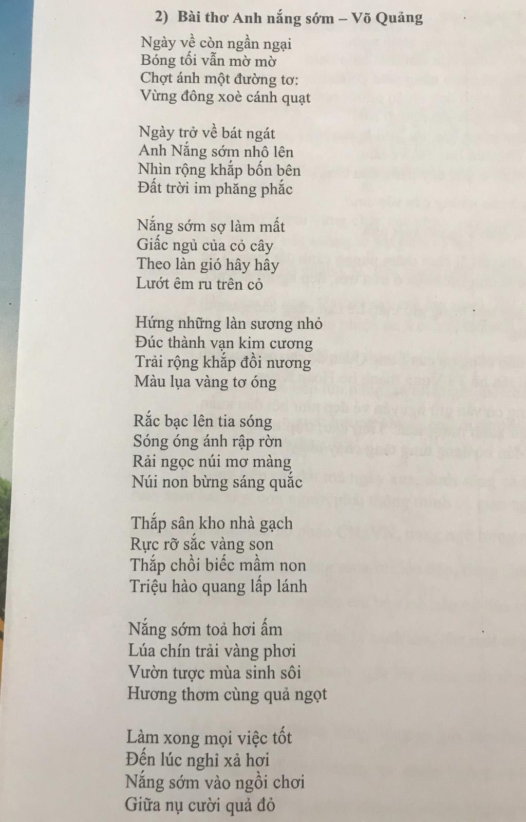 Danh từ: bóng tối, ngày, đường tơ, vừng đông, quạt, anh Nắng, bốn bên, đất trời, nắng, giấc ngủ, cỏ cây, làn gió, cỏ, làn sương, kim cương, đồi nương, màu lụa, bạc, tia sóng, sóng, ngọc, núi, sân kho, nhà gạch, chồi biếc, mầm non,hơi ấm, hào quang, lúa, vườn tược, hương thơm, mùa, quả, việc, nụ cười