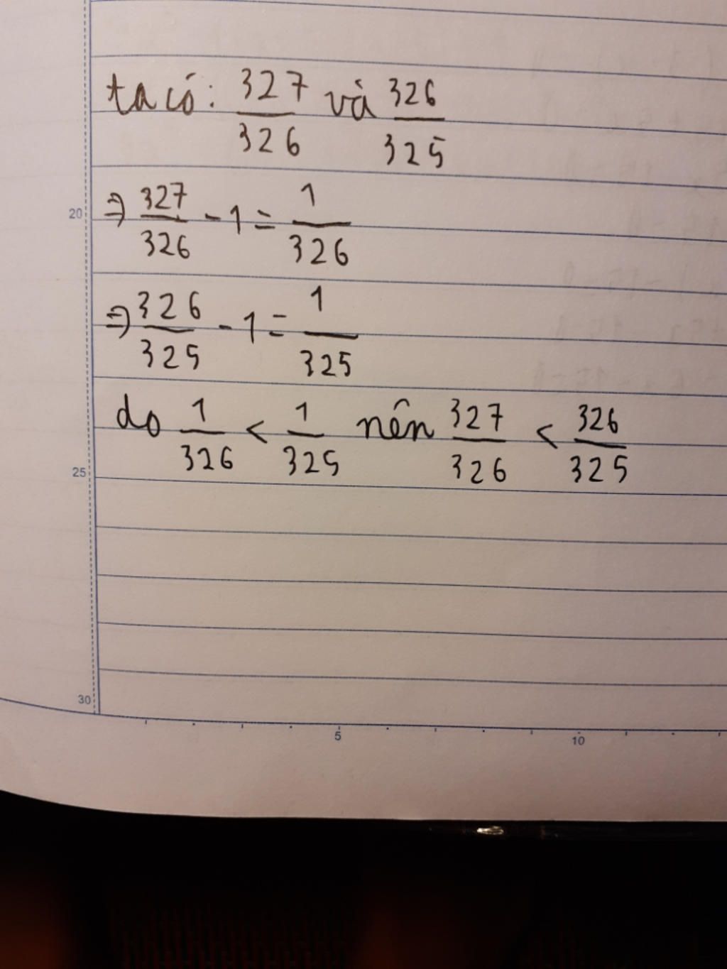 Vì $\frac{1}{326}$ < $\frac{1}{325}$