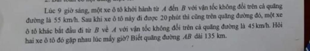 Quãng đường xe ô tô thứ hai đi từ `B` đến lúc gặp nhau là: `(x-1/3).45` (km)