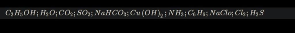 $C_2H_5OH,C_6H_6,Cl_2,SO_2,CO_2$