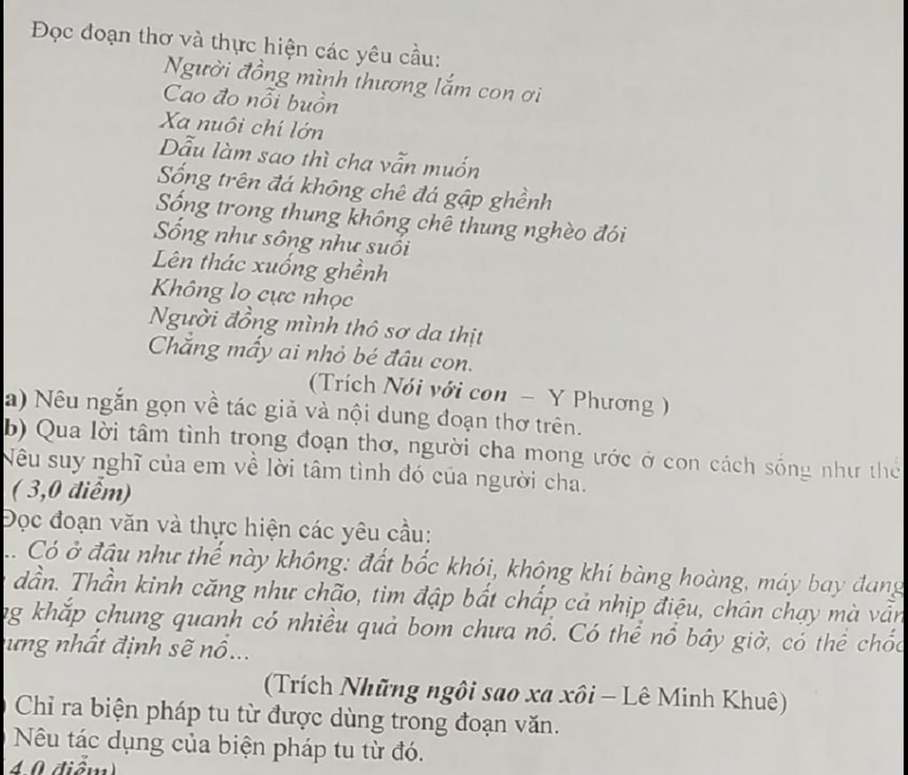 b ) Qua đoạn thơ , người cha muốn con phải sống thật ý nghĩa , phải có ý chí , sự quyết tâm vượt qua khó khăn gian khổ . Người cha muốn con " không chê đá ngập ghềnh " , " Không chê thung nghèo đói " , phải sống thật thủy chung , nghĩa tình với quê hương , " Như sông như suối " , sống kiến trì , lúc nào cũng phải nỗ lực vượt lên nghịch cảnh . Người cha còn muốn con sống đúng với bản thân , nguồn cội .