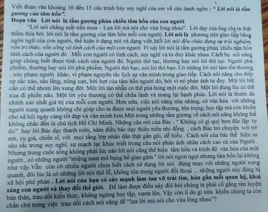 Đoạn văn Lời nói là tấm gương phản chiếu tâm hồn của con người