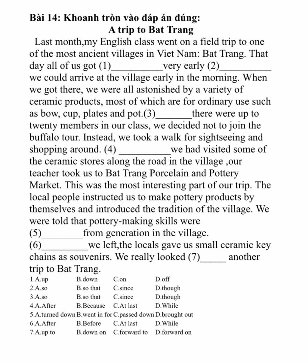 7. C (look forward to smt... = mong chờ một cái gì đó)