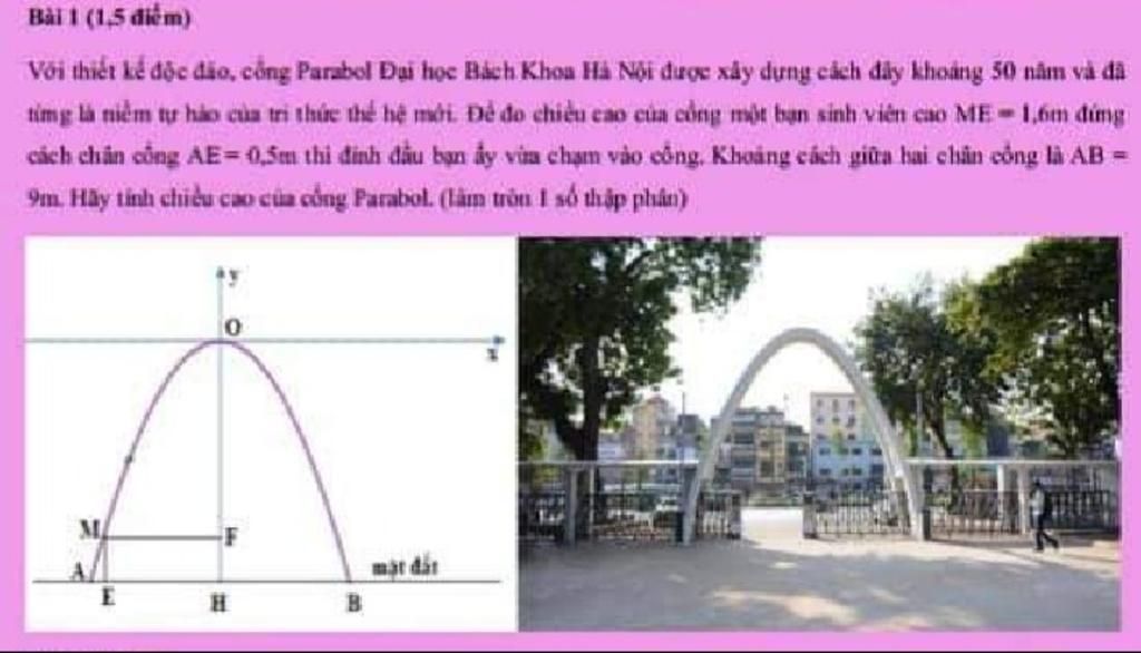 vì cổng paraboi đối xứng nên chiều cao cổng vuông góc với mặt đất
