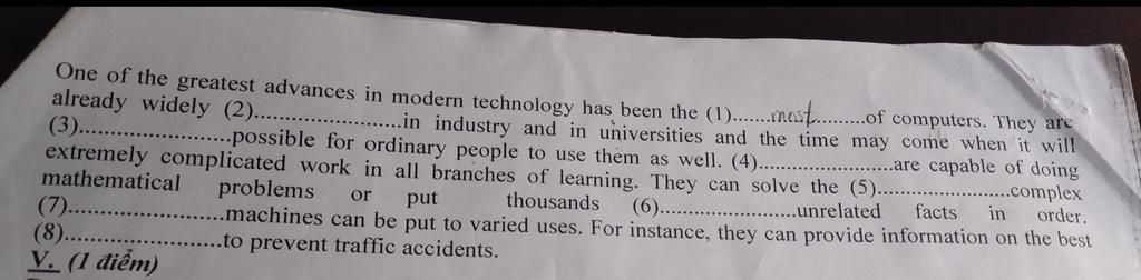 One of the greatest advances in modern technology has been the (1)..mast. .of computers. They are