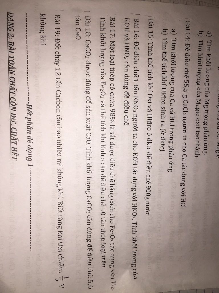 16) mKOH=0,5544 tấn; mHNO3=0,6237 tấn