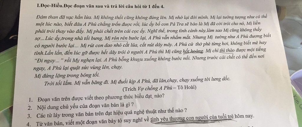 1. Đoạn văn trên được viết theo phương thức biểu đạt là tự sự