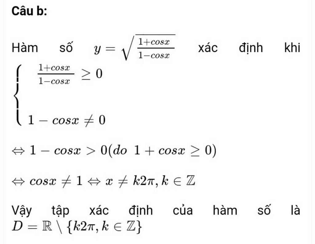 Do đó: $1-\cos x>0$ (không xảy ra dấu bằng do ở dưới mẫu)