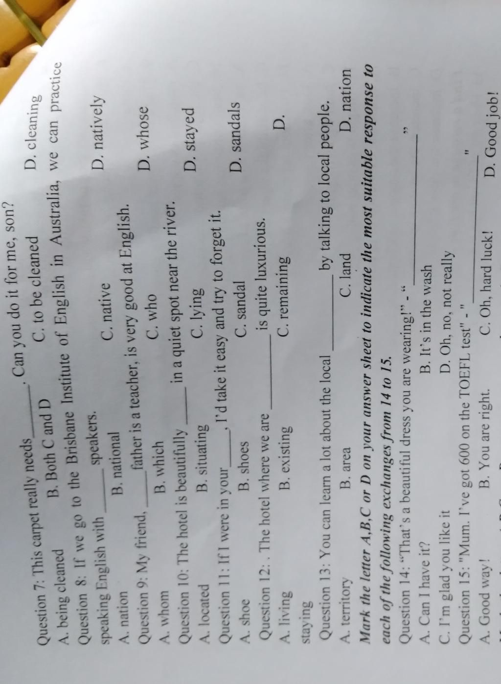 `15. D` Mẹ ơi con được 600 điểm trong bài thi TOEFL! - Tốt lắm!